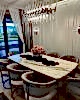 105x220cm Ölçülerinde, Calacatta Verde Ahşap Ayaklı Mermer Masa & Mermer Yemek Masası