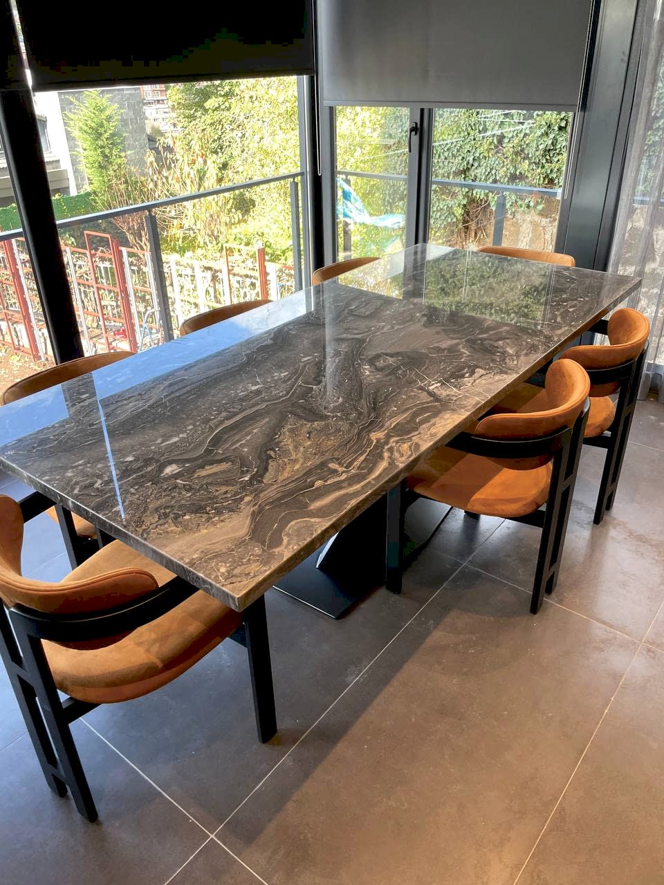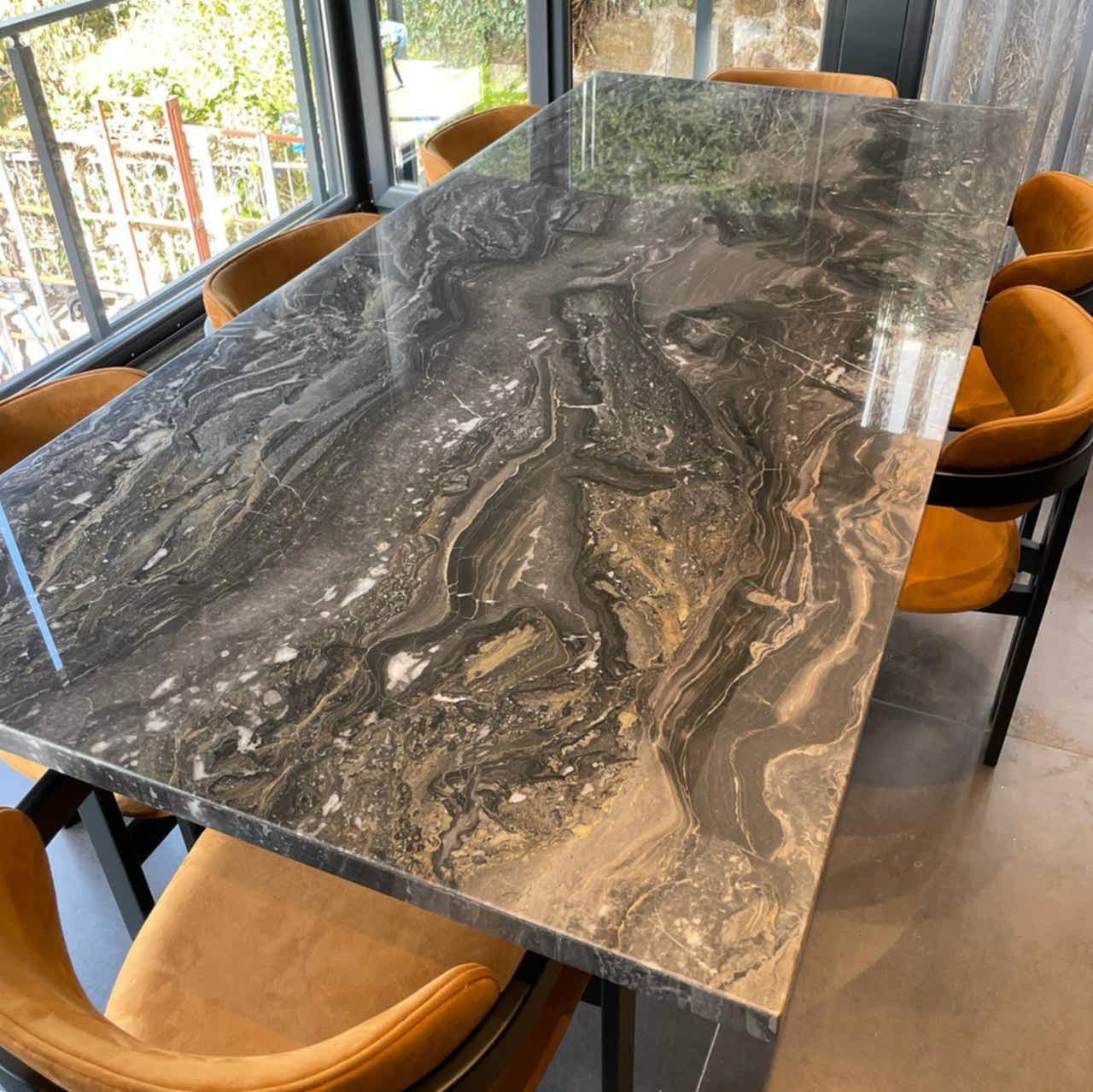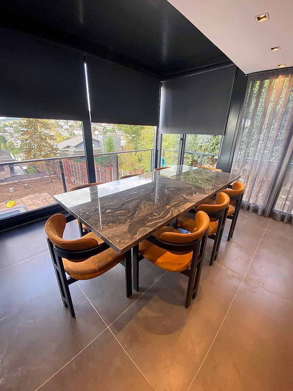 8 Kişilik Mermer Masa Takımı, İtalyan Grizio Versilla Mermer Kullanılmıştır.