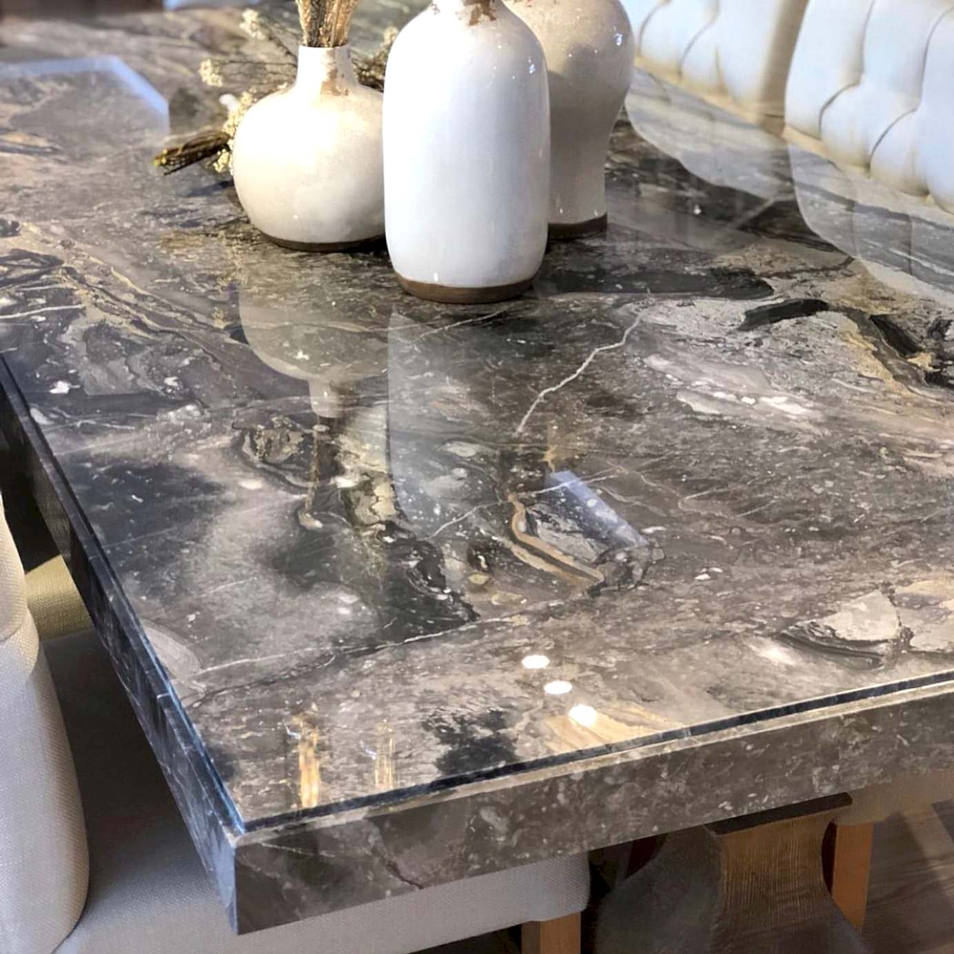 Tüm mermer masalarımız isteğe bağlı olarak leke almaması için koruyucu kaplama ile korunur.