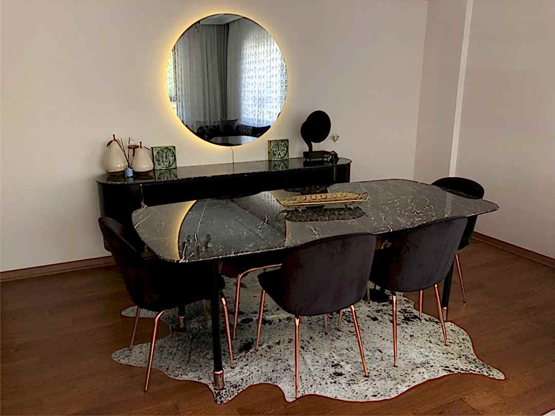 Mermer yemek odası takımı, mermer masa , mermer orta sehpa ve konsoldan oluşmaktadır. Seçtiğiniz mermer ile tüm ürünleri aynı mermer plakasından üretebiliriz.