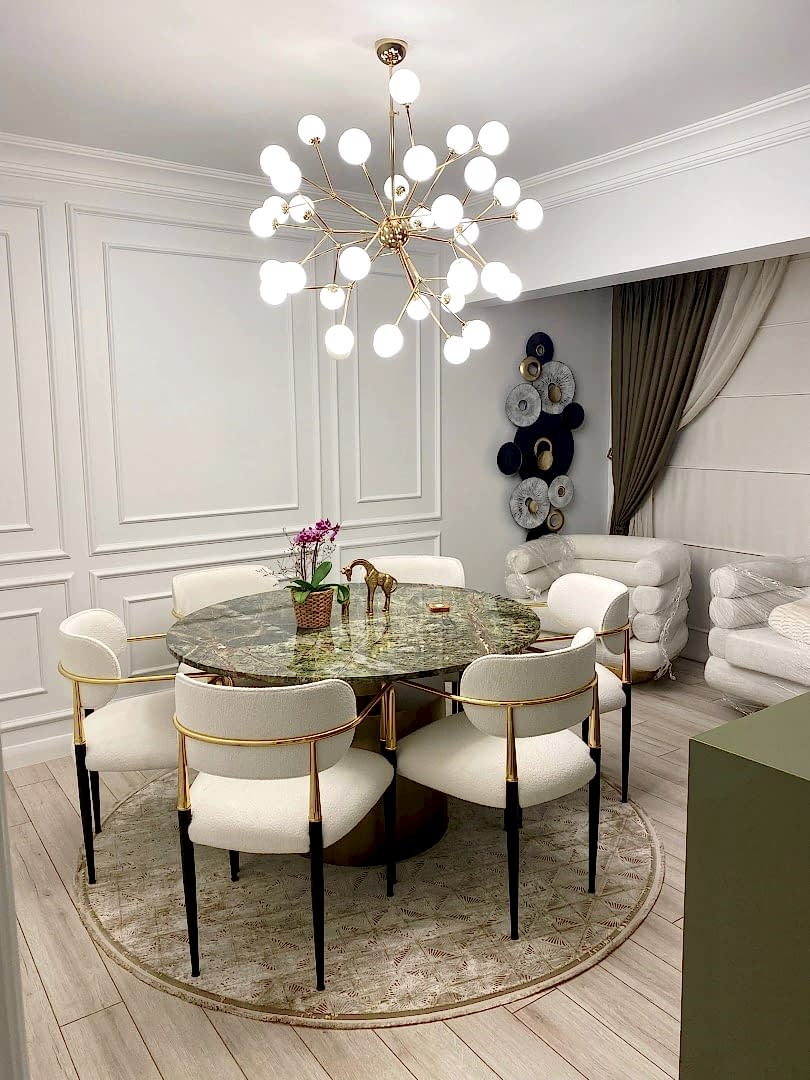 135cm Çapında, 6 Kişilik Yuvarlak Mermer Masa