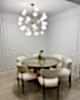 Rainforest Green Mermer’inden üretilmiş, 6 kişilik mermer masa.